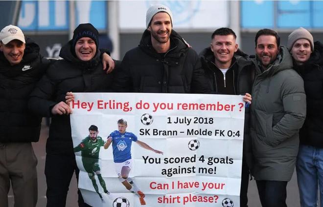 如今,拉德林格效力于奧地利維也納隊(duì),利用國(guó)家錦標(biāo)賽的間歇期,他前往伊蒂哈德球場(chǎng)觀看比賽。這位門將與哈蘭德有著過(guò)一段歷史:2018年7月1日,布蘭0-4不敵莫爾德,在那場(chǎng)比賽中哈蘭德上演大四喜,拉德林格決定以一種幽默的方式回憶這段經(jīng)歷。拉德林格出現(xiàn)在球場(chǎng),他在一面旗幟上寫著:“你好,哈蘭德,你還記得嗎?2018年7月1日,布蘭-莫爾德,0-4。你進(jìn)了我四個(gè)球!你能把你的球衣給我嗎?”
