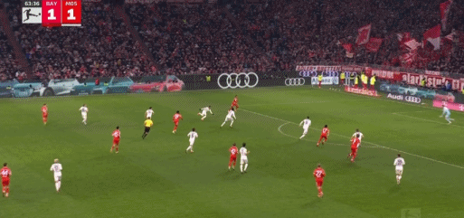 第16分鐘,韋拉施尼奇左路傳中,金玟哉頭球解圍擊中李在城的背部反彈到橫梁上彈出,拜仁逃過一劫。